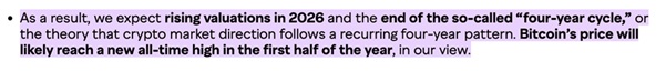 甚至連灰度這些機構巨頭也在喊單“估值回升”,並暗示傳統的“四年減半週期”已經徹底成為歷史。他們預計比特幣今年將不斷刷新歷史新高(ATH),而這種情緒將產生強大的外溢效應,帶動整個加密賽道開啟普漲模式。