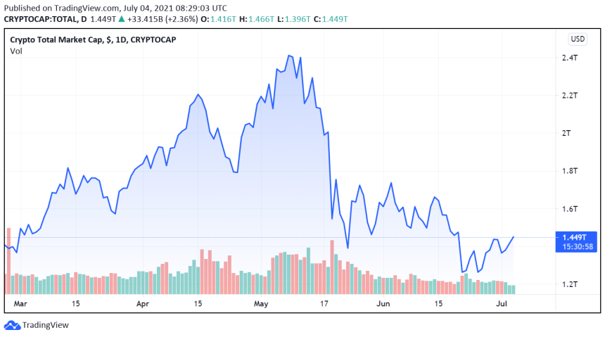 The daily chart shows that the crypto market is rebounding | Source: TradingView.com