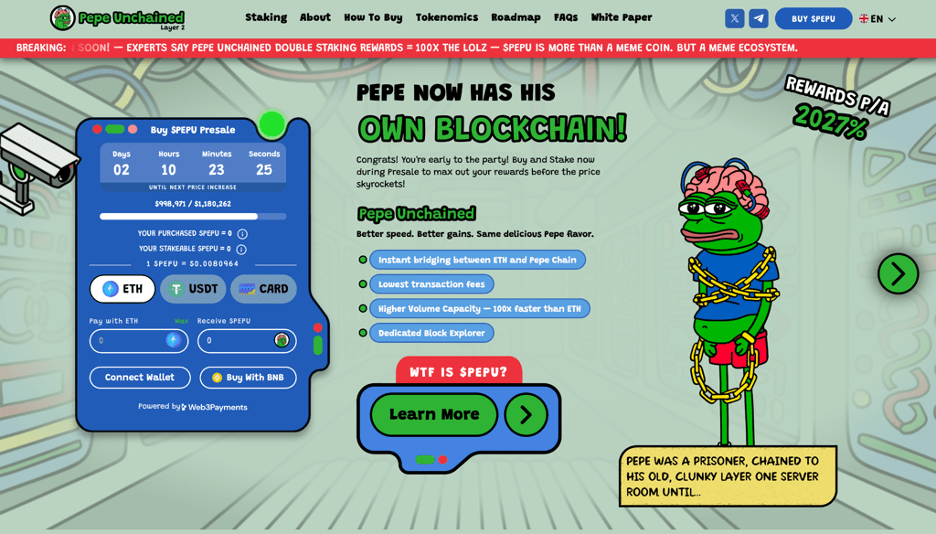Pepe Unchained is a Pepe-inspired meme coin with a twist.