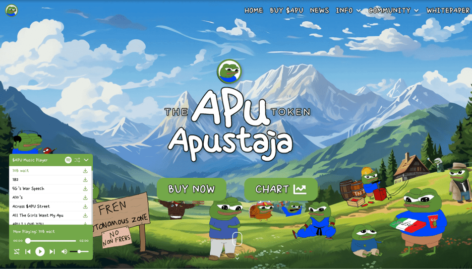Apu Apustaja is another Pepe-themed cryptocurrency. While it doesn’t have the same utility-centric allure as Pepe Unchained, it does have a strong memetic pull.