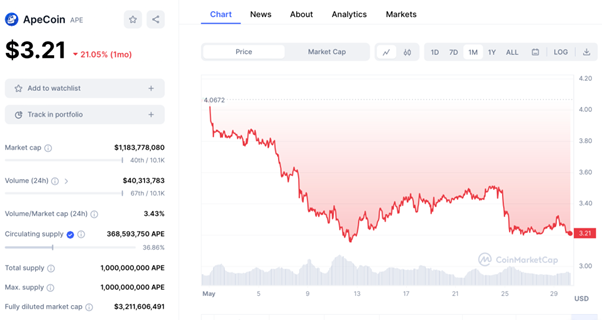 ApeCoin 1-month price overview, 30 May 2023, CoinMarketCap