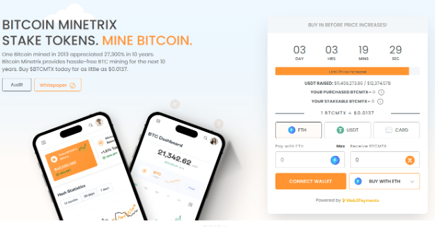 Bitcoin Minetrix (BTCMTX) operates as a cloud mining platform, leveraging tokens to enhance efficiency and user-friendliness. Unlike traditional Bitcoin mining, which poses challenges for most individuals, our platform and its associated token enable anyone to participate in mining the popular cryptocurrency. This accessibility opens up opportunities for investors to earn credits for additional Bitcoin mining by staking BTCMTX tokens, effectively addressing reliability and fraud concerns associated with cloud mining.