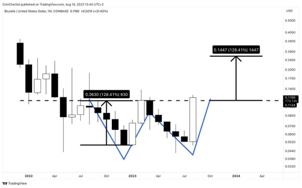 If price can convincingly break above neckline resistance and close above the key level, the next month could see follow through with increasing volume. These signs would help further validate the chart pattern, which has a target of over $0.25 per BLZ token.