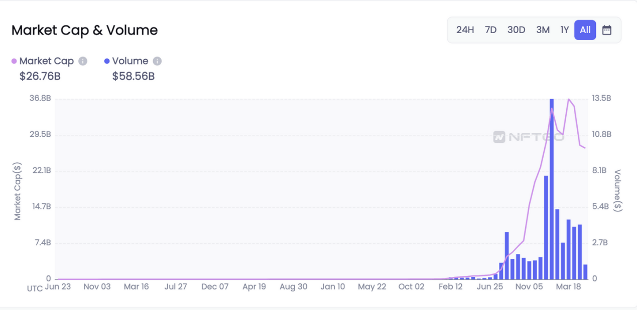 Figure 1: Market Cap & Volume of NFTs | Source: nftgo.com | As of June 1, 2022