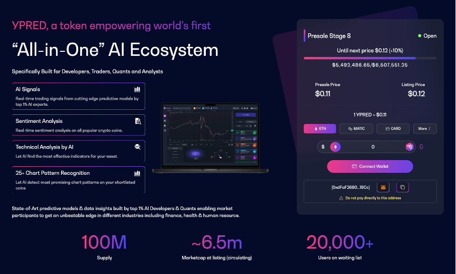 The presale for yPredict (YPRED), a new AI-powered cryptocurrency, has been a roaring success so far, raising $5.5 million with just $1 million left to reach its hard cap goal.