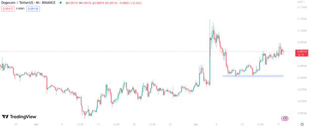 Following the highs at the beginning of the month, Dogecoin entered into a retracement. The coin found support around the $0.08 mark but has started climbing steadily on the news of Musk’s newest venture.