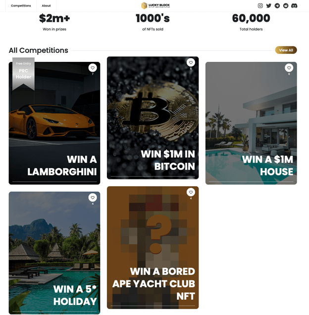 Lucky Block hosts a selection of other NFT-based competitions, including the following;