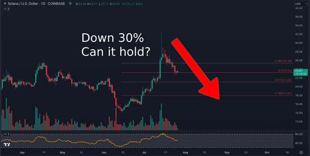 On the other side, resistance for $SOL now lies at $24.50 (July 2021 lows), $26, $28.30, $30, and $32.
