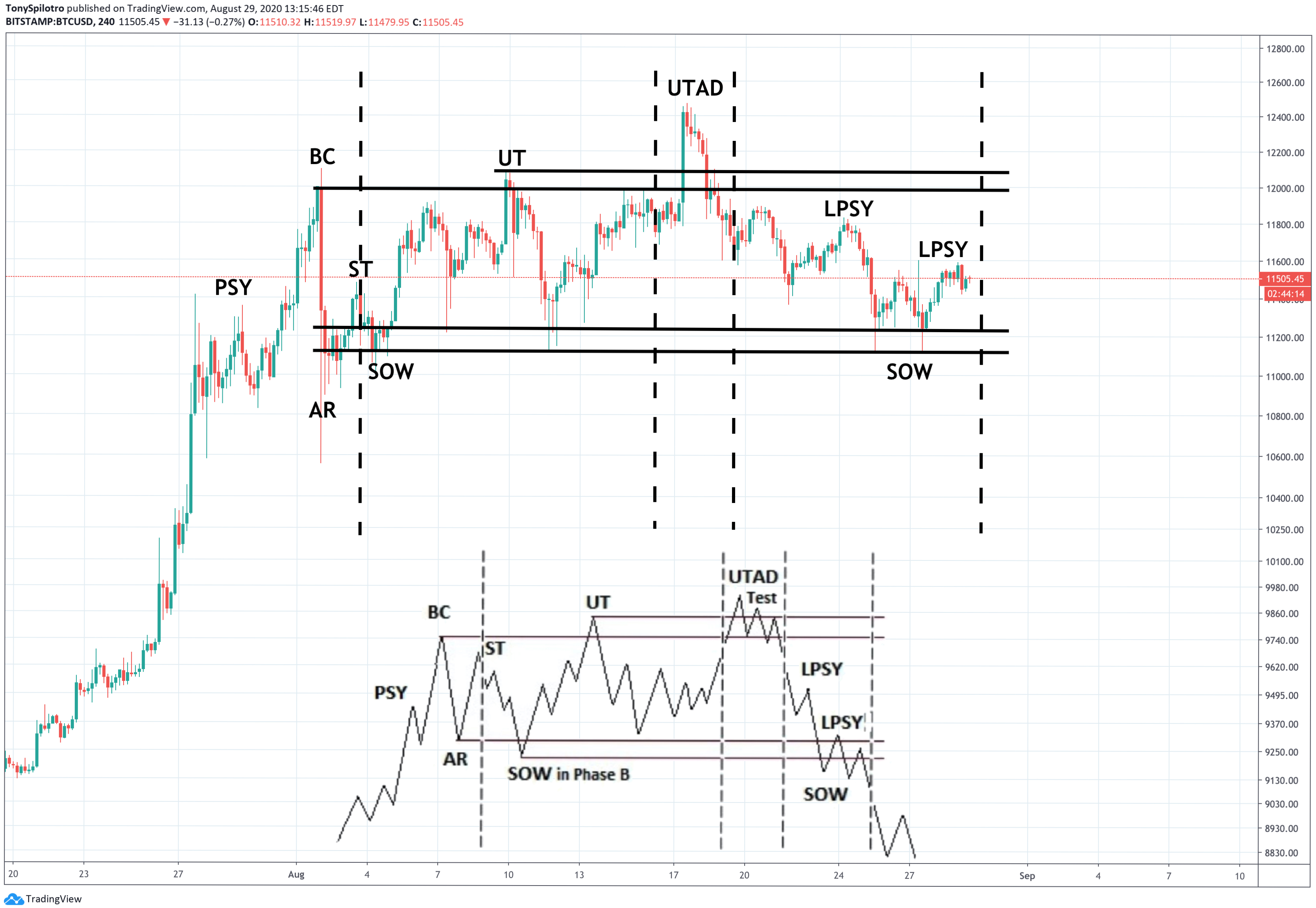 BTCUSD Wyckoff Distribution Schematic Comparison | Source: TradingView