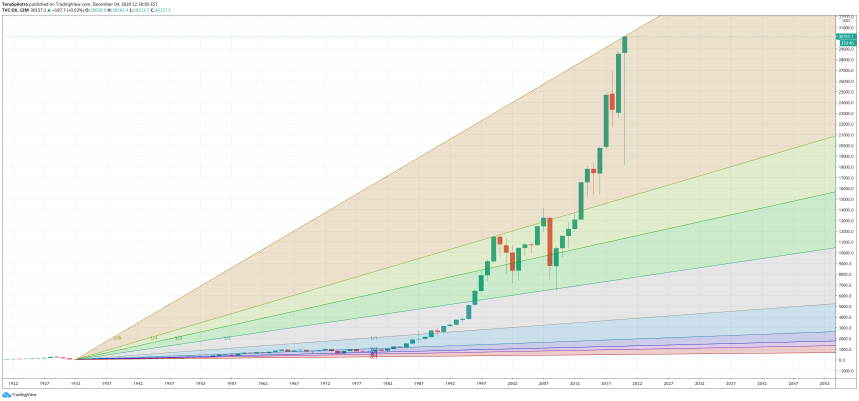 This Gann fan is a dangerous take on the Dow Jones at the end of 90-year supercycle | Source: BTCUSD on TradingView.com