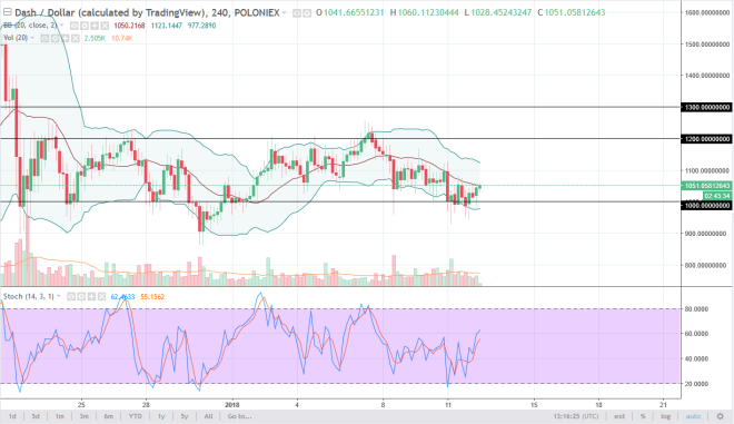 DASH continues to drift around, bouncing from the $1000 level on Friday. The market looks a bit limp, and quite frankly I think you can take your time before jumping in with both feet. However, if you are a short-term trader, you may be able to trade back and forth. I think we will probably go looking towards the $1100 level if we get any momentum at all, as it is obvious that there is massive support at the $1000 level, extending down to the $950 level. If we do breakout to the upside, expect a lot of resistance at $1200.
