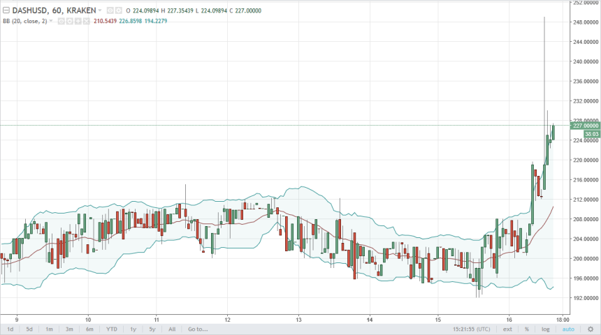 DASH continues to look choppy in general, but we saw quite a bit of bullish pressure during the day. By exploding to the upside, we have cleared a significant barrier, and it now looks like we could continue to go higher. However, with the choppy nature of this market it’s likely that the pullbacks will continue. Quite frankly, those pullbacks should be buying opportunities at this point and I expect the $208 level to offer support.