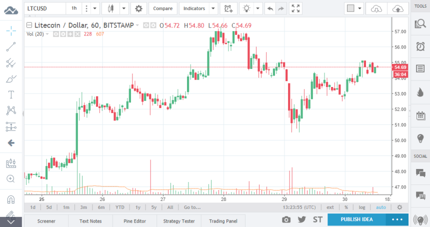 Litecoin rose slightly during the day on Friday, and over the weekend started testing the $55 level. This is a bullish sign, and should signify that we are about to break out to the upside again. Pullback should be supported, I expect all the way down to the $50 handle. Selling isn’t a thought.