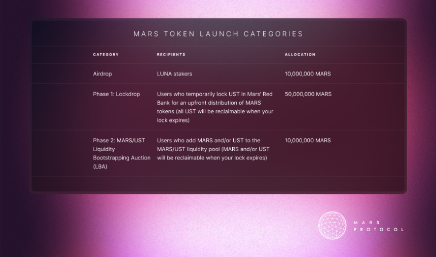 LUNA holders will benefit from this launch, as stated by the team behind Mars, with a one-time distribution on 10,000,000 MARS. In order to receive the airdrop, users needed to be stakers by January 1st, 2022, when a snapshot was taken to determine the beneficiaries. The announcement added: