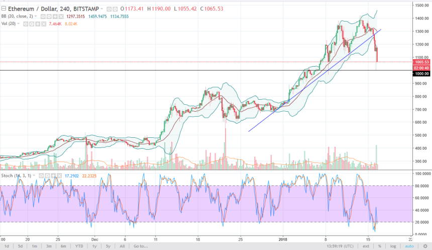 Crypto currencies are getting pummeled during the trading session on Tuesday again, as Ethereum has reached down to test the $1000 level. If we break down below this level, that will bring in fresh selling, and probably free the market to go down to the $850 level. Alternately, if we can bounce a break above $1200, that is a bullish sign.