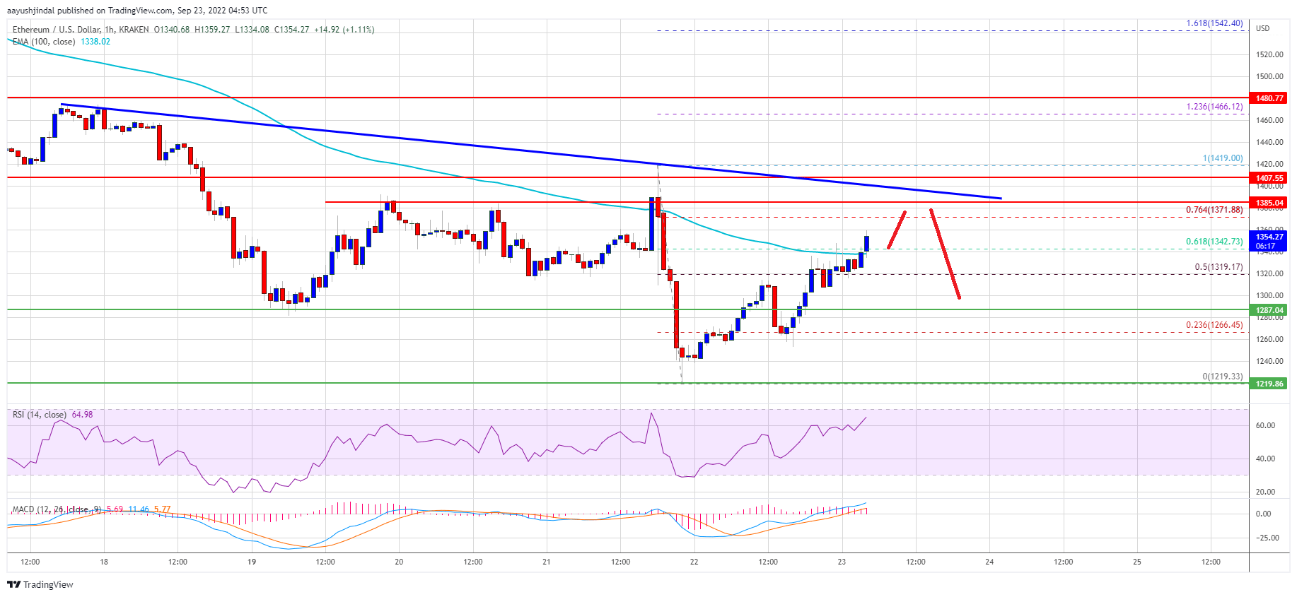 Ethereum managed to stay above the $1,220 support zone. ETH started an upside correction above the $1,250 level after ripple’s xrp started a strong upward move.