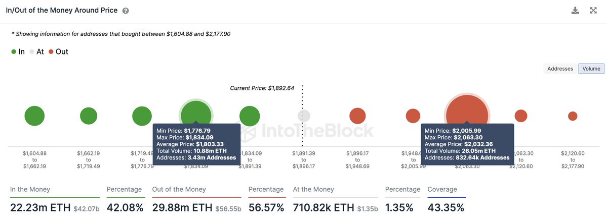 However, according to analyst Ali Martinez, that’s where the price will hit Ethereum’s key supply wall, which is in the $2,000 to $2,060 range, where 832,640 addresses have bought over 26 million ETH. “If ETH can break through this resistance barrier, we can expect an upswing to $2,330 or even $2,750,” Martinez believes.