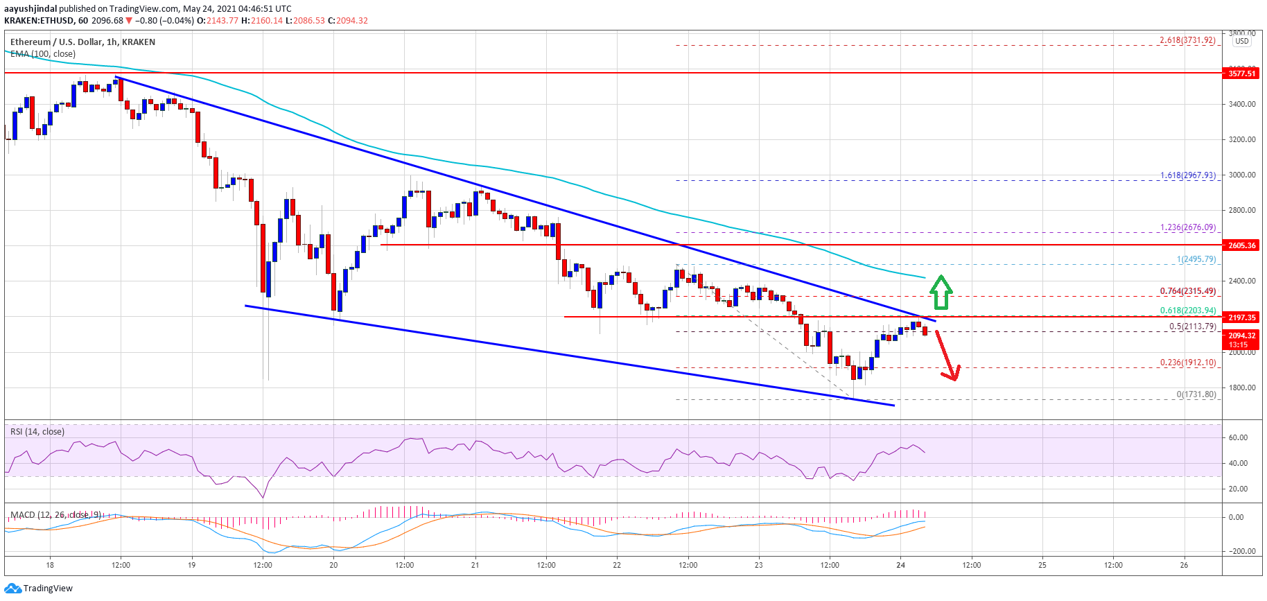 - The pair must clear $2,200 and $2,400 to start a decent recovery in the near term.