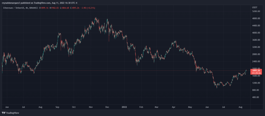 Ethereum is coming into heavy resistance north of $1,900 as the cryptocurrency attempts to push further into previously lost territory. Today, ETH core developers announced a tentative date for the upcoming “Merge” event set for September 15 to 16, 2022, which could bolster bulls’ attempts to climb higher.