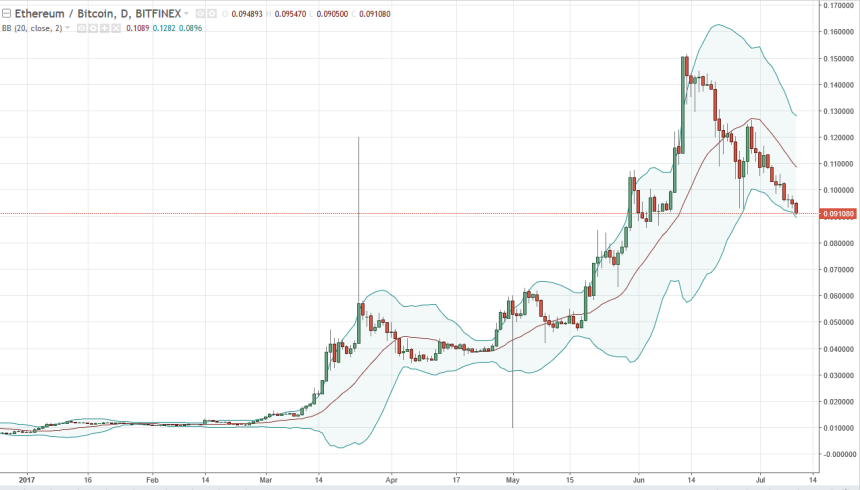 Ethereum is testing the 0.09 level against Bitcoin, which should be supportive. However, we have not seen a bounce yet so it’s likely that the market may need to take the next day or so to stabilize. If we do breakdown below the 0.09 level, I think the market will then go looking for support near the 0.08 level after that. I’m not willing to sell, I just don’t think that it’s time to buy.