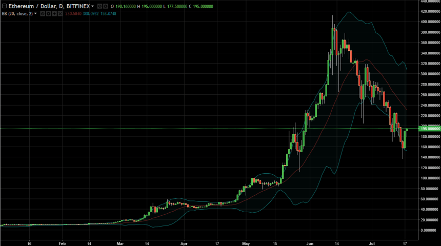 The Ethereum market initially fell during the day against the US dollar on Tuesday but found enough support at the $180 level to turn around and form a hammer. A break above the $200 level would be a bullish sign, and should continue to bring more buyers into the marketplace.