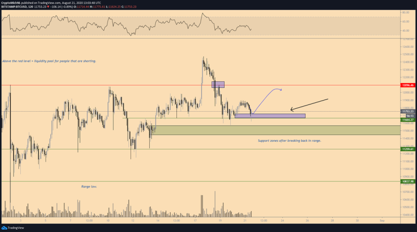 BTC has been trading between $11,600 and $12,000 for the past three weeks. The only exception to this trading range was seen earlier this week when bulls stepped up and propelled the crypto up towards $12,400.