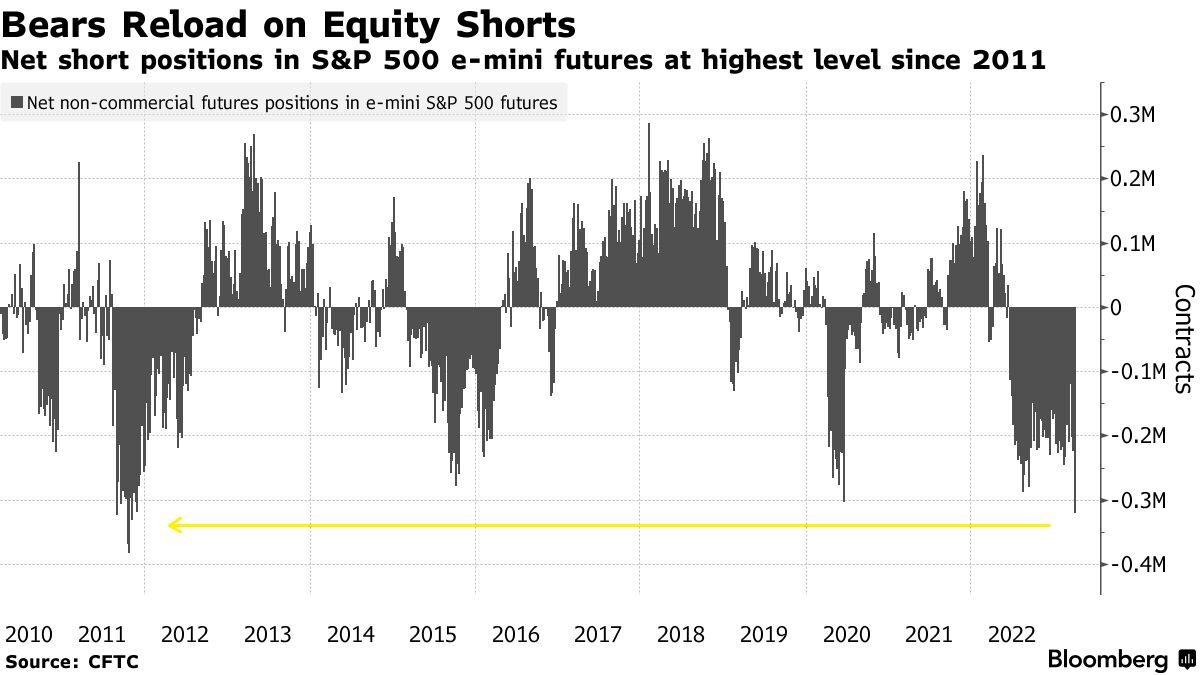 Hedge Funds boost S&P shorts to decade high before CPI, earnings. Net short positions at levels not seen since 2011. Goldman’s clients cut tech longs at fastest pace in 15 months.