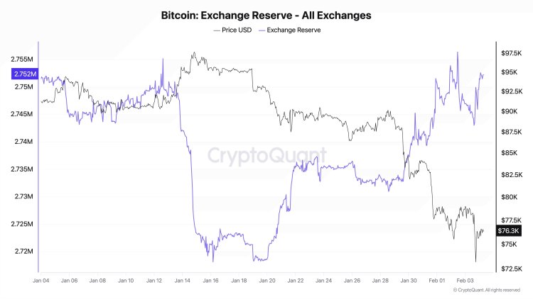 Come mostrano i dati dell’indicatore Exchange Reserve, 34.000 BTC sono tornati sugli exchange dal 19 gennaio.