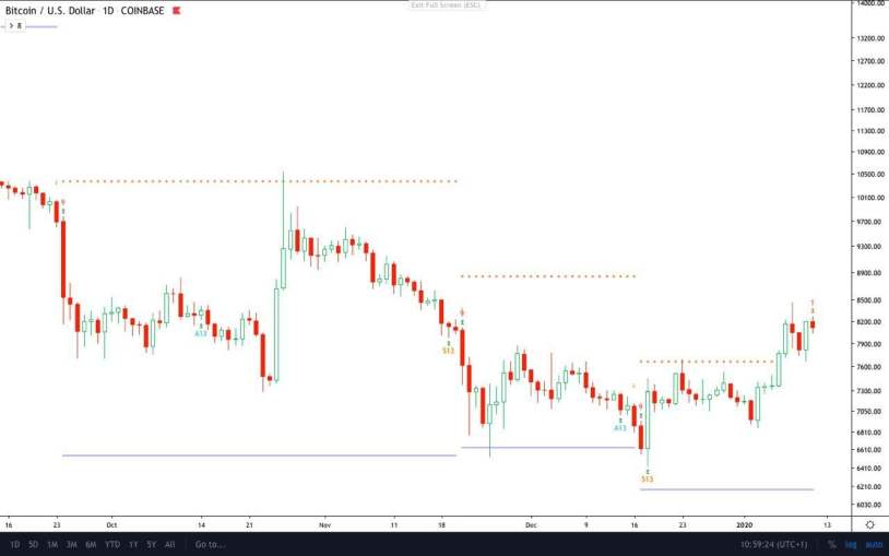 Despite this strong surge, a key indicator, the Tom DeMark Sequential (better known as the TD Sequential), recently printed a bearish signal. According to a Telegram alerts channel tracking the time-based indicator, which predicted Bitcoin’s bottom at $3,200 in 2018 and the top at $14,000, the BTC/USD chart just printed a “Sell Quasi 9” on the daily.