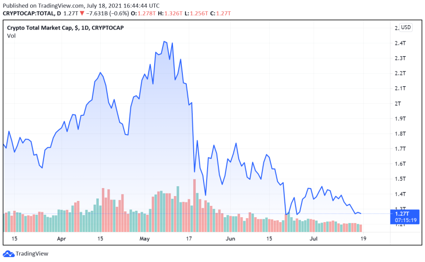 Investors are in a panic as the cryptocurrency market keeps following a downtrend | Source: Crypto Total Market Cap on TradingView.com