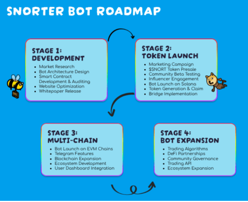 Po TGE se načrt Snorter Bot razširi preko Solane, z načrti za uvedbo podpore več verig. Tako da bo njegov trgovalni motor lahko zaznal in izkoristil prebojne meme kovance v več ekosistemih.