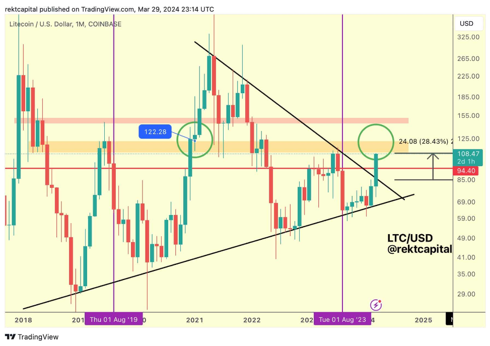 Popular crypto analyst Rekt Capital has also chimed in, noting the historical significance of similar price breakouts for LTC. He believes a successful retest of the downtrend and subsequent establishment of support could be indicative of a promising uptrend for the cryptocurrency.