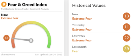 The following day has not come with much good news as the Fear & Greed Index still shows that investors are very wary of the market. The index currently sits at 13 at the time of this writing, a mere 2 points higher than its weekend low of 11. Nevertheless, the Fear & Greed Index has now spent a week in extreme fear as last week concluded with the index in the same territory.
