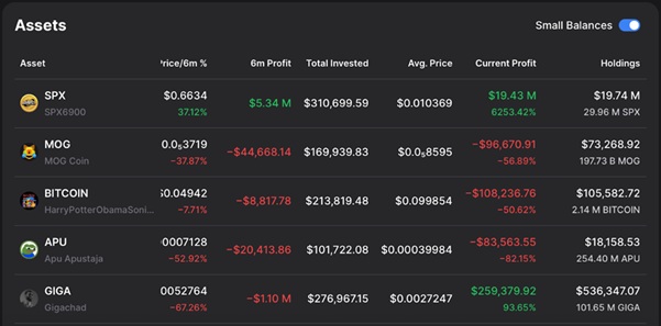 雖然他的一些小倉位項目已逐漸失去動能,但像 SPX 和 GigaChad(GIGA) 這樣的重倉贏家,已讓他的投資組合成為整個加密圈最令人羡慕的倉位之一。