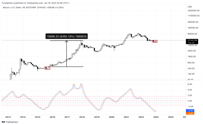 Historically, the Fisher Transform turning up combined with a 20% monthly bullish candle was enough to end each bear market in the past. The most direct comparison, took place in 2015, when another morning star reversal pattern helped trigger a new bull trend.