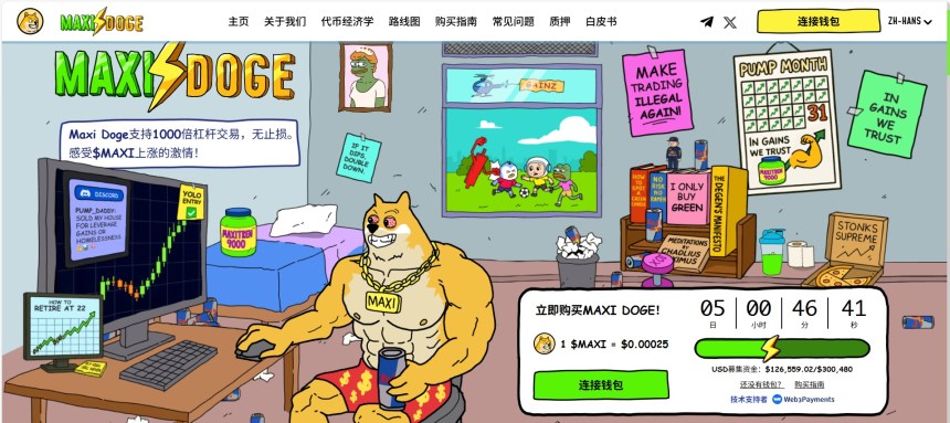 Maxi Doge Token預售現已上線,僅剩五天以0.00025美元的價格搶購$MAXI,第二階段價格將會上調。