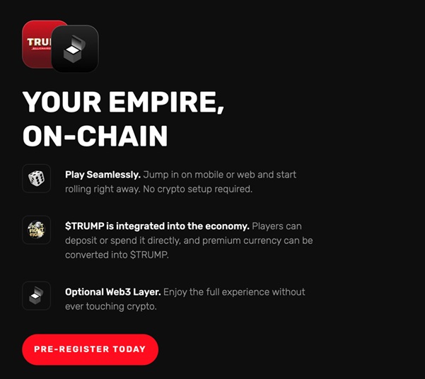 一款掛著美國總統唐納德·特朗普名字的新加密遊戲近日在幣圈刷屏,但細看細節你會發現,這所謂的 “Web3” 首發有點離譜:玩家甚至可以完全跳過鏈上部分,把它當普通 Web2 遊戲玩。整體更像披著區塊鏈外衣的傳統手遊,而不是真正的 Web3 鏈遊。