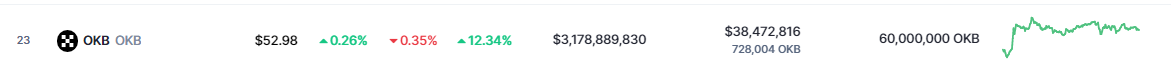 According to CoinMarketCap, OKB is currently trading at $52.98, up an impressive 12.34% in the last seven days. This surge in price has left many investors and analysts curious about the factors contributing to OKB’s bullish momentum, especially given the overall downward trend of the crypto market in recent weeks.