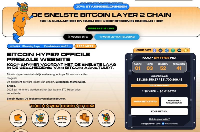 In dat kader wordt Bitcoin Hyper steeds vaker genoemd als een project om in de gaten te houden. Het richt zich op snellere transacties en lagere kosten, en speelt in op de behoefte aan efficiëntere oplossingen binnen het crypto-ecosysteem.