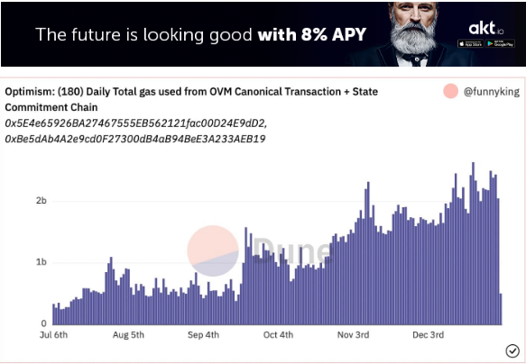 Optimism was able to use less gas than other L2s, despite having a lower TVL and lower income, as reported by Dune Analytics. Even when compared to Arbitrum, the Layer 2 solution performed better.
