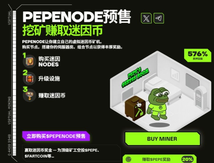 PepeNode 將 Pepe 品牌的病毒式傳播力與“虛擬挖礦”產品的市場契合度結合,解鎖可持續的收入流。