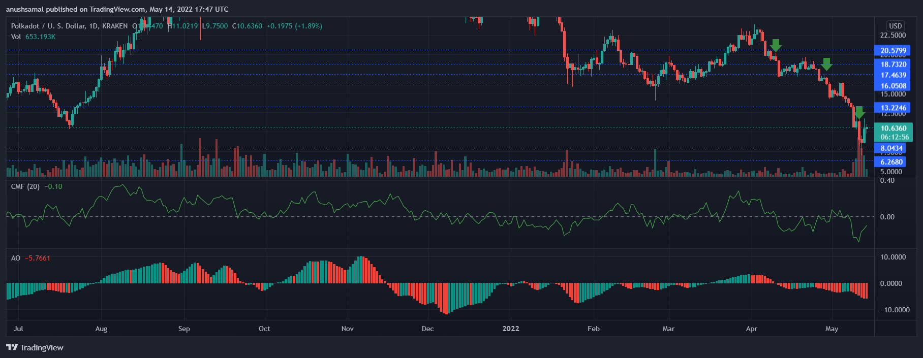Polkadot was trading at $10.64 at the time of writing. In the last 24 hours, DOT lost over 12% and in the past week, the coin lost close to 30% of its market value.