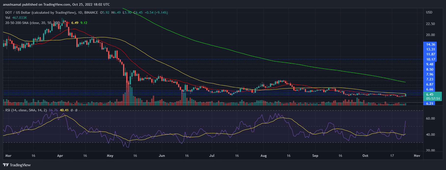 DOT was trading at $6.40 at the time of writing. The coin has been consolidating for almost two months now. It finally managed to secure some gains over the last 24 hours.