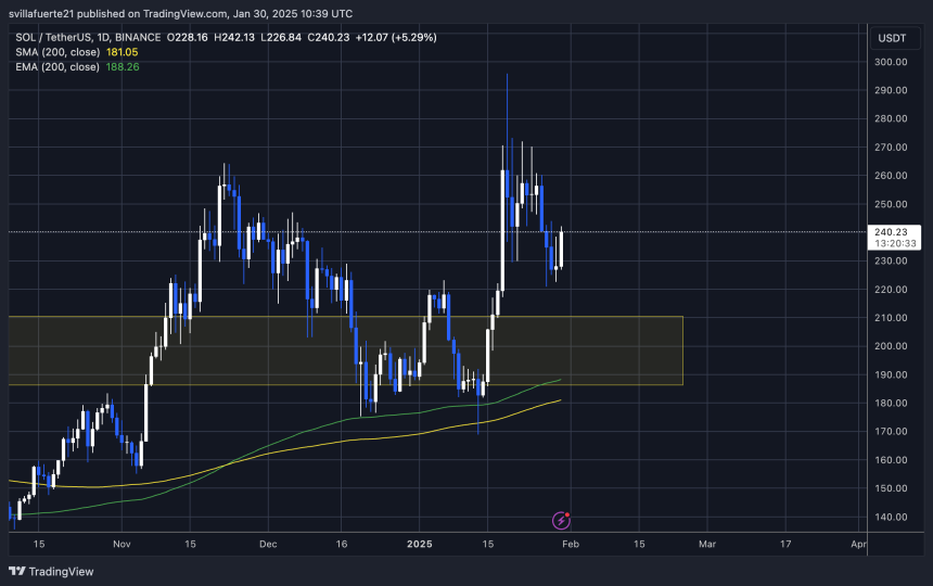 Solana (SOL) is currently trading at $240 after successfully testing the $220 level as support. The price appears ready to bounce, but key resistance levels must be reclaimed to confirm a short-term trend reversal. For bulls to maintain momentum, SOL must break above $240 and $260, two critical resistance zones that have capped upward movement in recent days. If Solana clears these levels with strength, a surge above all-time highs (ATH) will be imminent, setting the stage for price discovery.