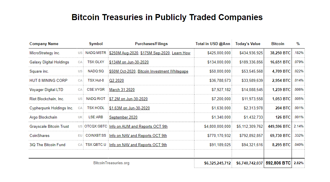 Although MicroStrategy and Square are the only non-crypto companies that have made headlines for their adoption of BTC as a reserve asset, data shows that in total, eleven publicly traded companies own 3% of the benchmark cryptocurrency’s total supply.