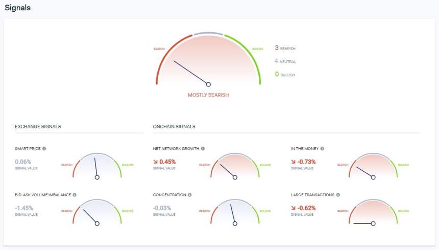 Three out of seven of IntoTheBlock’s metrics are currently “bearish,” indicating that the underlying Bitcoin network is contracting alongside price. This corroborates the sentiment that there is a downtrend forming.