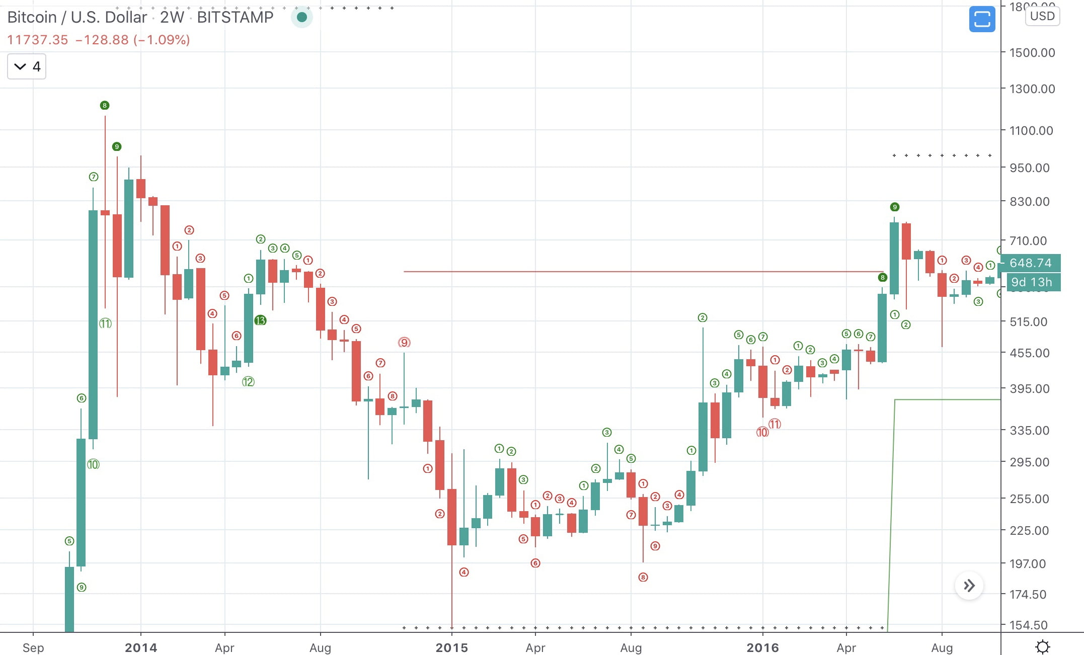 BTCUSD Two-Week TD Sequential 2014-2016 | Source: TradingView