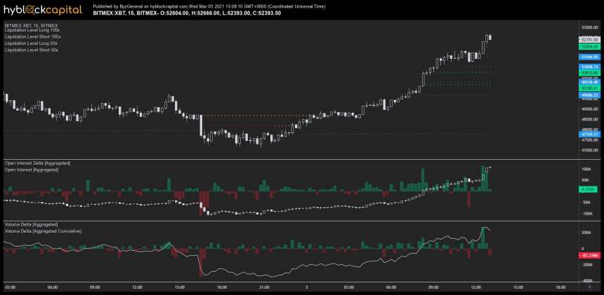 Open interest has surged since the break back above $50,000 | Source: hyblockcapital.com