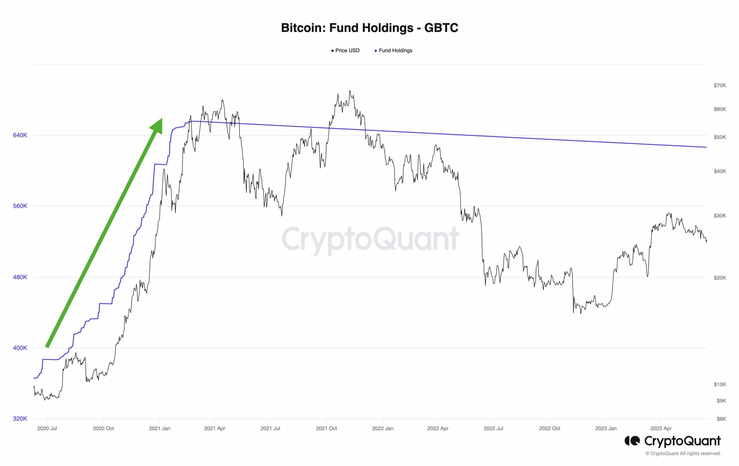 However, whoever wins the race, it seems clear at the moment that Bitcoin investors will be the winners. Head of resaerch at CryptoQuant, Julio Moreno, recently shared the chart below and commented: “Here’s what happens when a big fund [Grayscale’s GBTC] increases Bitcoin demand.
