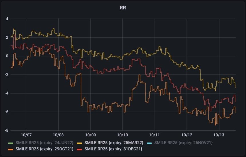 As seen below, QCP Capital highlighted the dynamic in the BTC Options markets with the “front-end risk reversals” tending downside. This suggests a lot of uncertainty amongst investors and a “prevailing downside nervousness”. The firm said: